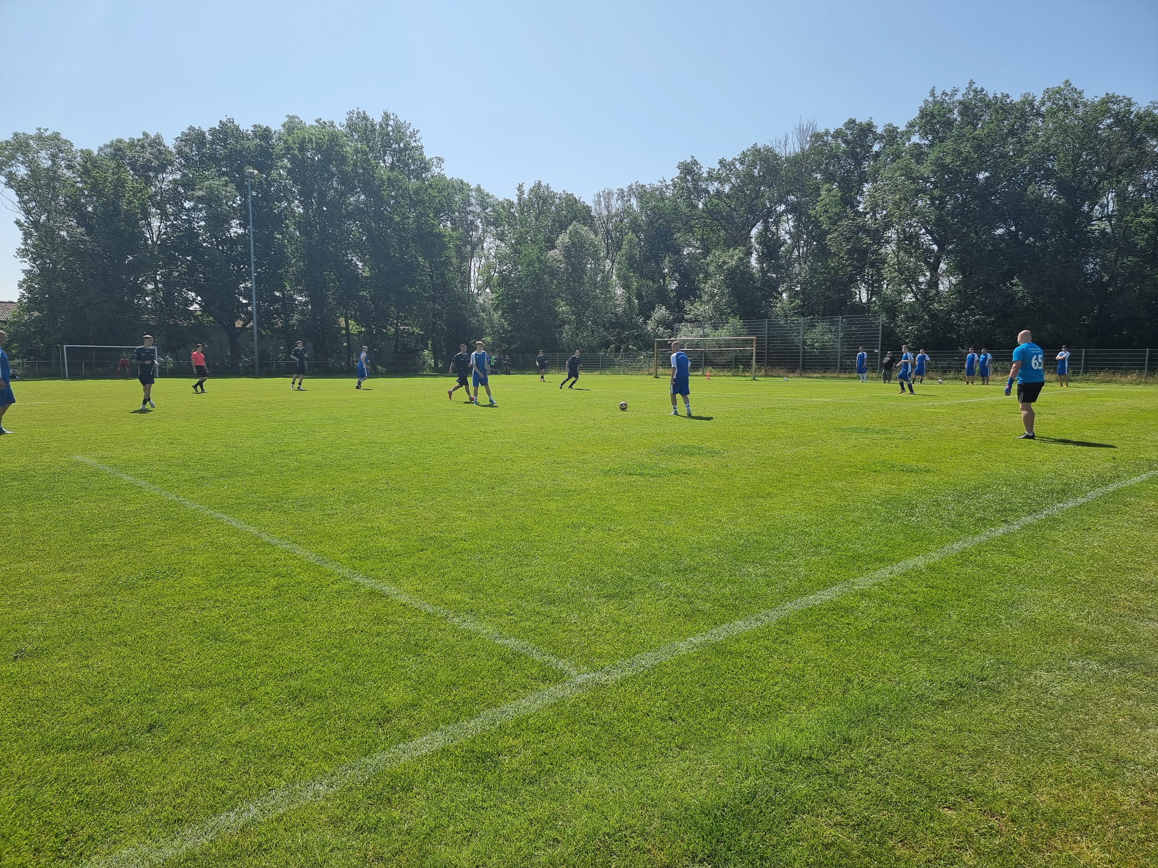 Schon am Morgen war klar, dass uns ein Sahnetag bevorsteht. Die Sonne strahlte wie ein frisch polierter Pokal, und die Laune war so ansteckend, dass selbst der miesepetrigste Grasbüschel anfing zu tanzen. Pechau verwandelte sich in unser persönliches blau-weißes Wunderland, und die Luft knisterte vor Vorfreude auf faire Zweikämpfe und – nun ja – auf Tore, die dann leider doch nicht immer so wollten, wie wir. Apropos Abkühlung: Wir hatten zwar keine Gletscher direkt am Spielfeldrand, aber unsere Eiswürfel waren die heimlichen Stars des Tages! Sie kühlten nicht nur unsere Getränke, sondern dienten auch hervorragend für die eine oder andere Nacken-Erfrischung oder als Trostpflaster für zarte Gemüter – Multifunktionalität at its best!