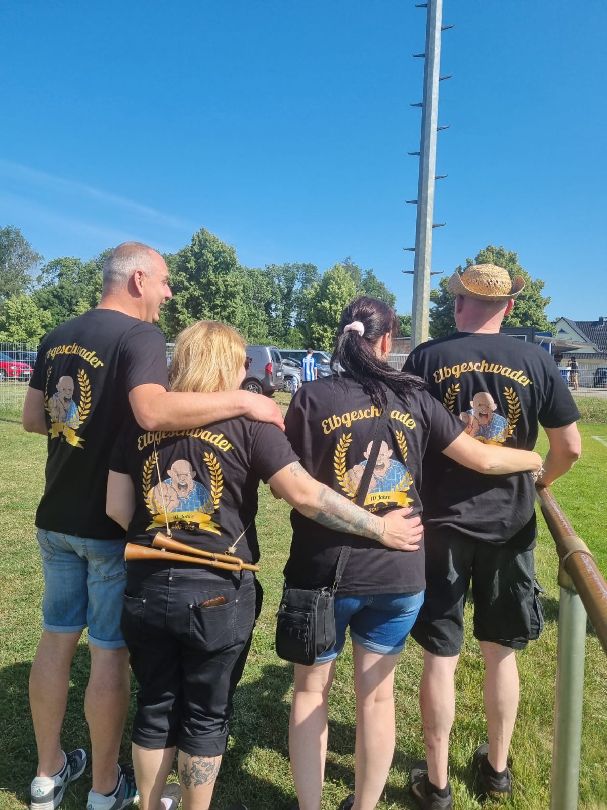 Doch das Elbgeschwader wäre nicht das Elbgeschwader, wenn wir uns von so einer kleinen Toreflaute unterkriegen ließen! Beim Tauziehen haben wir dann gezeigt, wo der Frosch die Locken hat und dass wir nicht nur Köpfchen, sondern auch ordentlich Muckis haben! Jeder packte an, als gäbe es kein Morgen, und die Rufe "Zieht! Zieht!" hallten über den Platz, als hätten wir persönlich die Elbe umleiten wollen. Unser ultimativer "Endgegner" war dabei ein ganz besonderes Kaliber: Molli von der Fanbetreuung! Dieser Mann ist ja nicht nur für sein freundliches Wesen bekannt, sondern auch für sein stattliches Gewicht, das er gekonnt ins Seil legte. Es war ein Kampf David gegen Goliath – oder eher Elbgeschwader gegen eine menschliche Mauer mit eingebauter Schwerkraft-Verstärkung! Wir haben uns gewunden und gezogen, bis die Muskeln brannten, und am Ende konnten wir diesen gigantischen Brocken bezwingen (oder zumindest so stark in die Bredouille bringen), dass wir stolz den 2. Platz im Tauziehen holten! Was für eine Leistung! Und als wäre das nicht genug, bewies Molli nach dem Kraftakt auch noch seine Größe und verteilte fleißig Autogrammkarten – da staunte selbst das Seil, und wir fragten uns, ob Molli nicht ins Fitnessstudio gehört, sondern direkt ins Guiness-Buch der Rekorde!